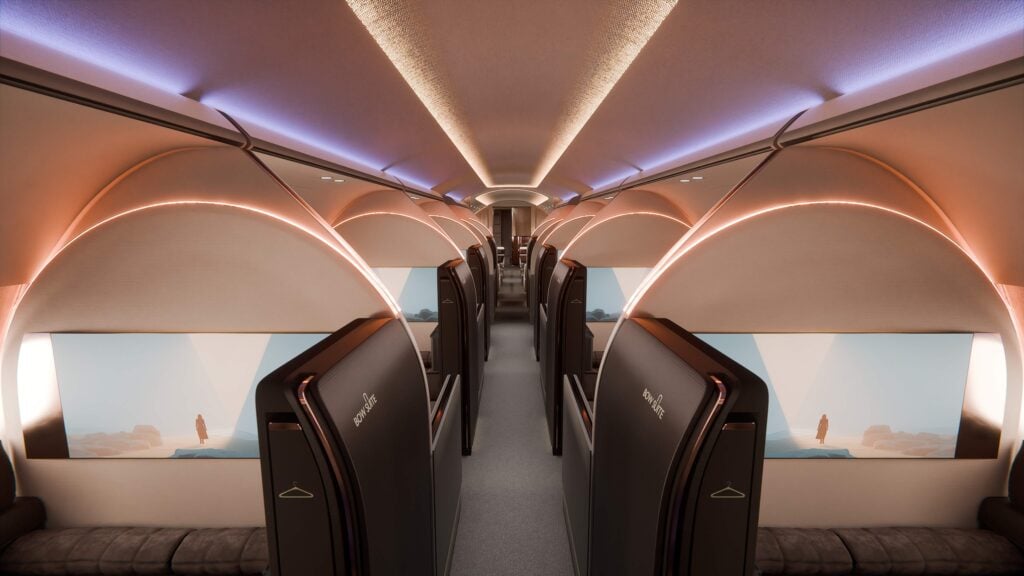 The concept is designed around shared exclusivity rather than individual VIP travel. It targets groups such as corporate boards, professional sports teams or touring artists. Each private suite accommodates one or two passengers and can be used for meetings or dining, with dedicated personal storage for items such as instruments or professional equipment. Adjustable partitions allow the cabin to shift between private and open environments.